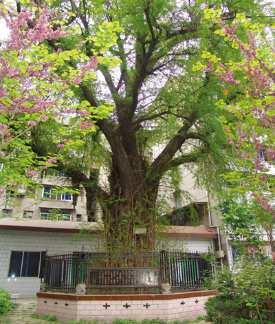 簡(jiǎn)介:銀杏,俗名白果,是我國(guó)珍貴樹種;這株銀杏樹栽于簡(jiǎn)陽(yáng)市老政府后院,樹高20余米,胸徑1.7米,胸圍5.3米,據(jù)簡(jiǎn)陽(yáng)記載,栽植于明朝萬(wàn)歷二十三年(公元1595年),距今400余年,任然生長(zhǎng)旺盛,每當(dāng)陽(yáng)春三月,枝葉萌發(fā),綠影婆娑;秋涼時(shí)節(jié),夕照輝映,金光閃耀。樹干氣根下垂,年復(fù)一年日益壯大;其為簡(jiǎn)陽(yáng)之一景。